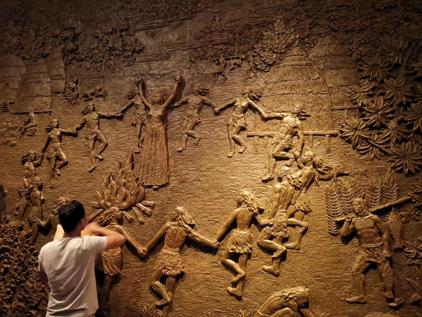 展示双墩先民生活大型浮雕作品即将完工