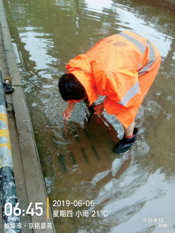 环卫工人清理主次干道雨水管网井口