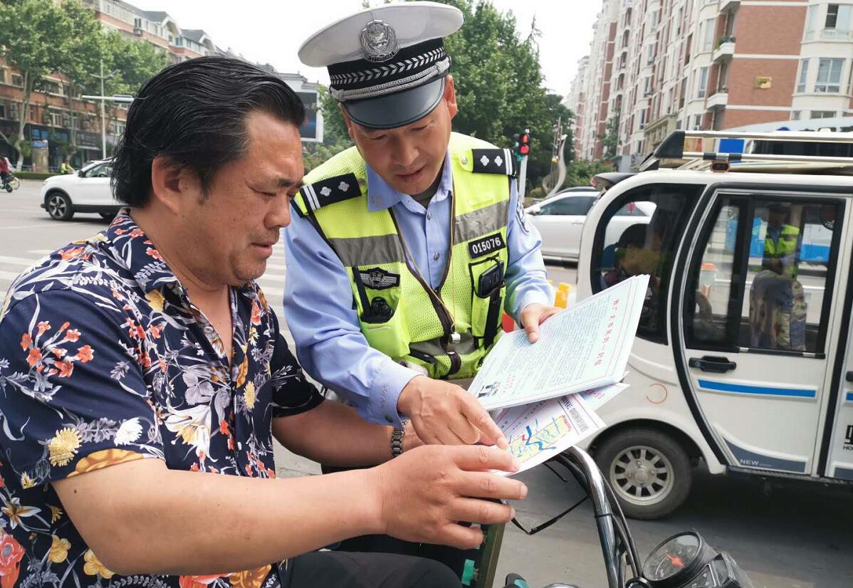 蚌埠民警街头宣传整治电动三、四轮车工作通告