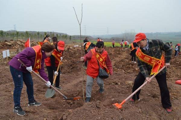 3月18日,马城镇大洪山林场,禹会区组织各级文明单位志愿者和部分道德模范、身边好人开展新时代文明实践义务植树活动。