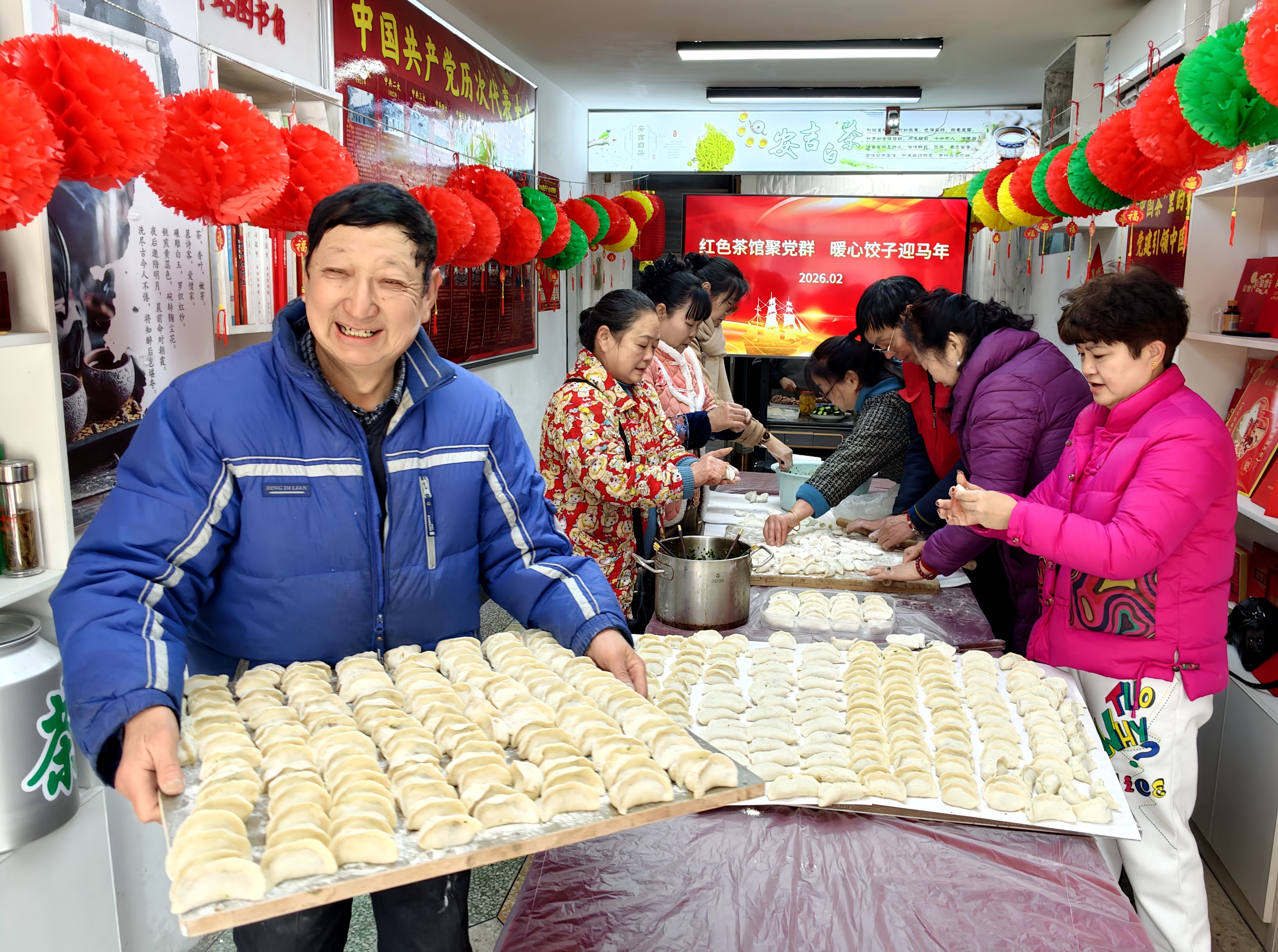 红色茶馆饺子香邻里团圆迎新春