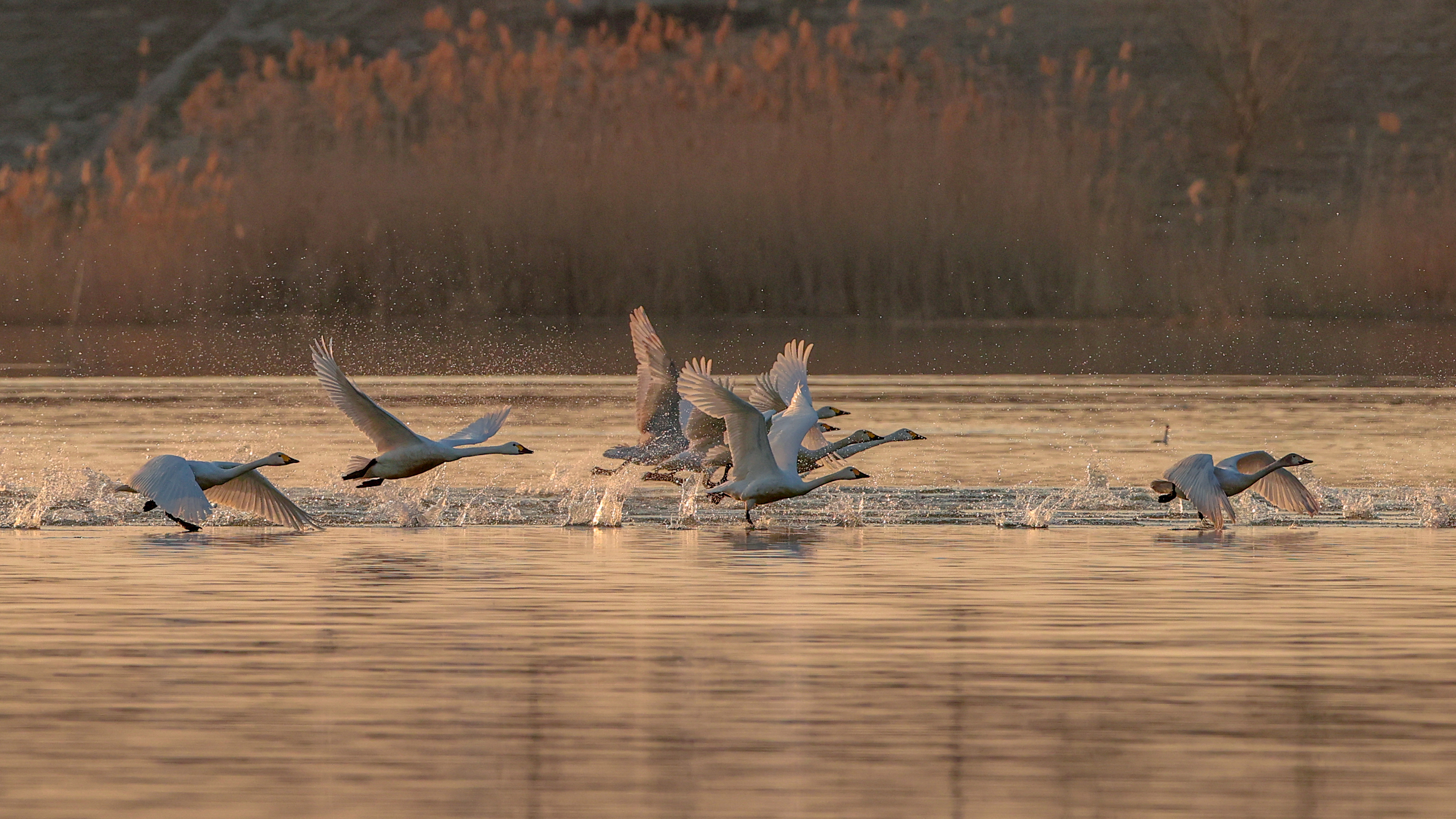 大河湾天鹅群“嘎嘎”欢鸣 起飞瞬间美到犯规