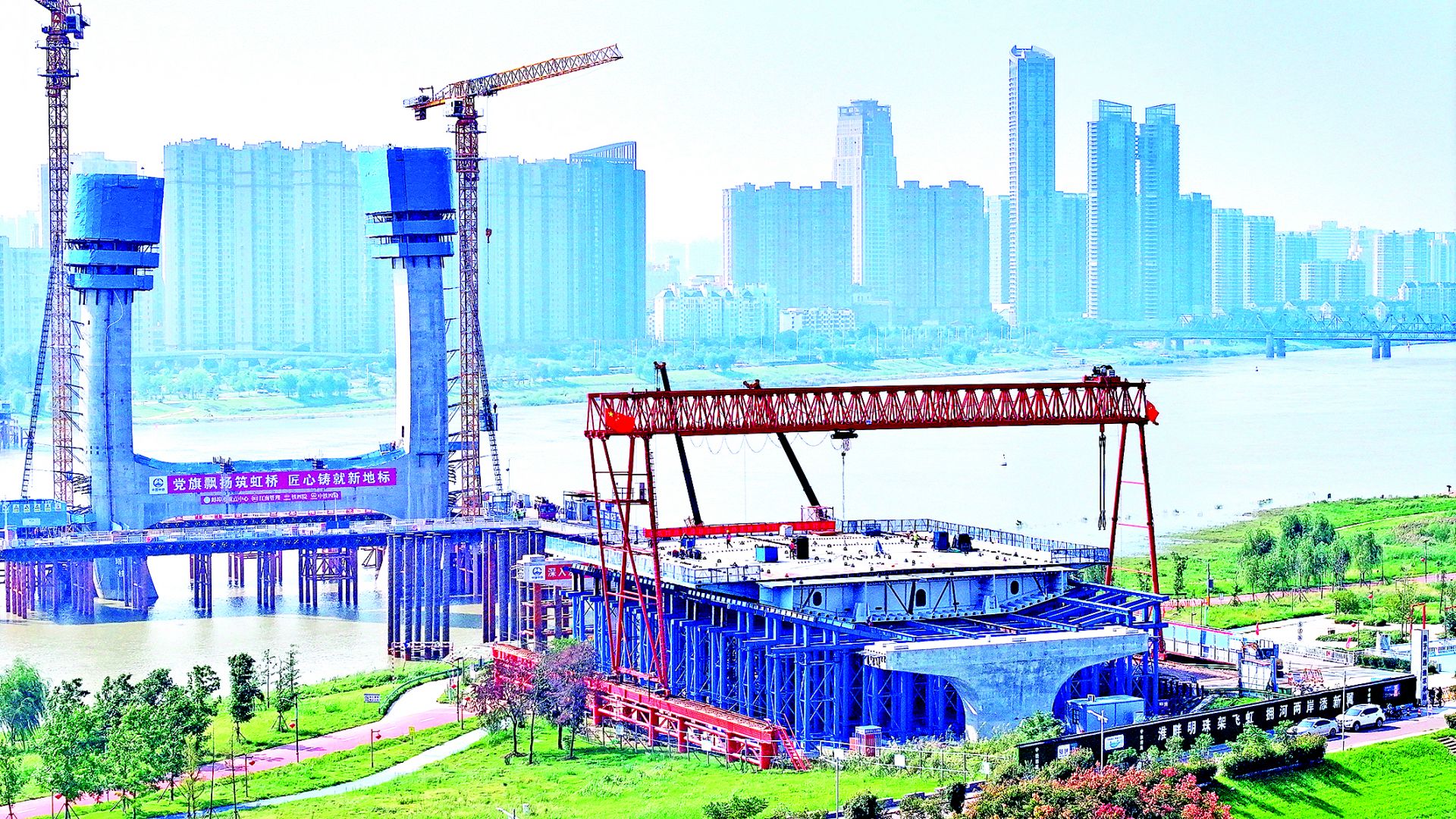 延安路淮河大桥及接线工程首节钢箱梁架设成功 预计2026年春节前完成主塔封顶