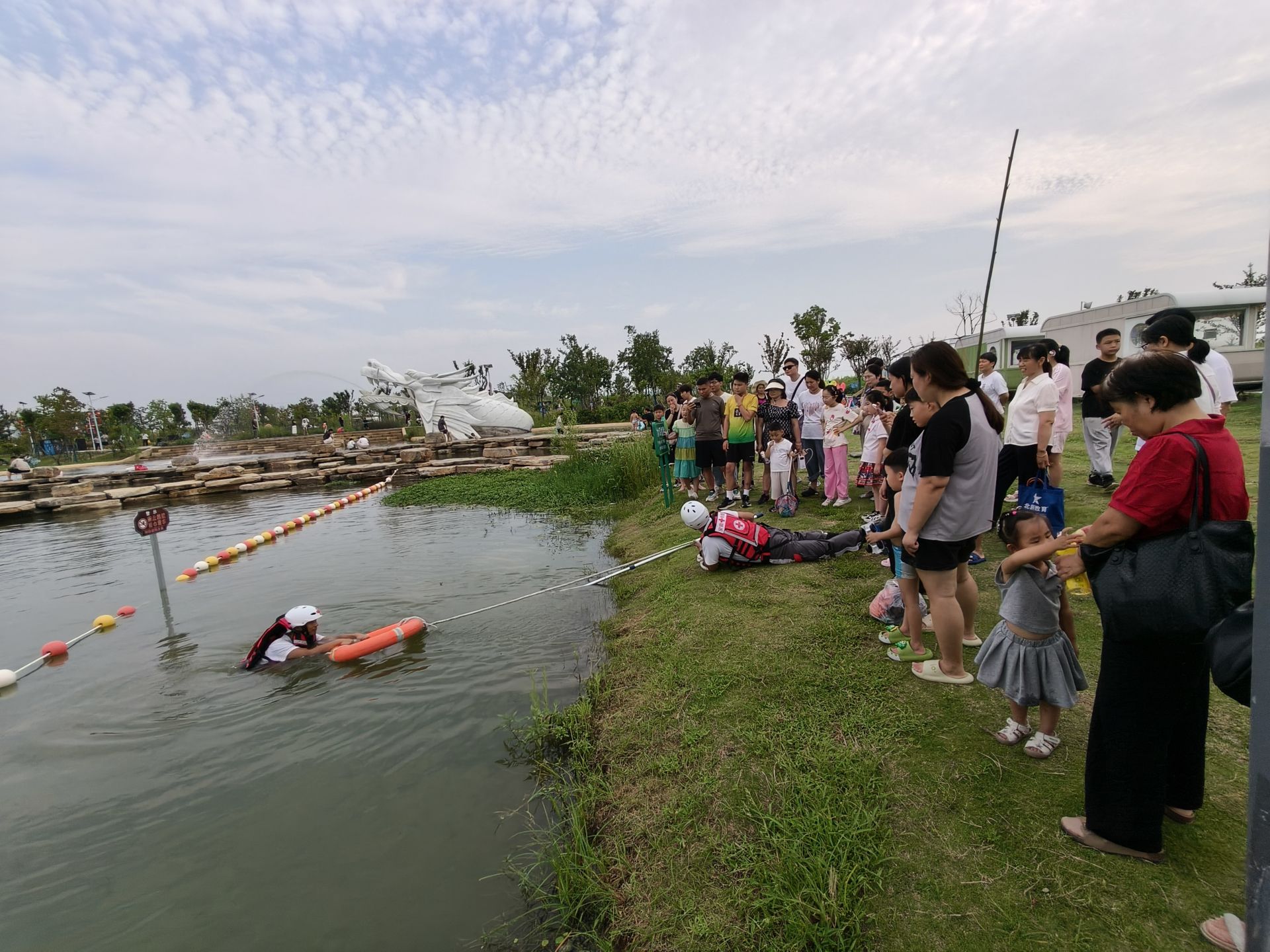 蚌埠市红十字救援队在龙子湖景区开展防溺水实景教学
