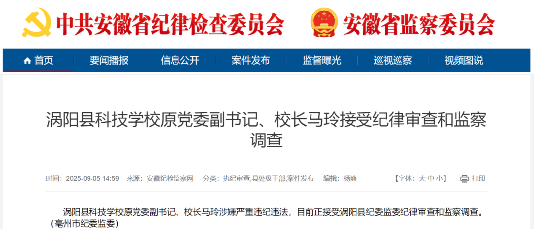 安徽一学校原校长被查!