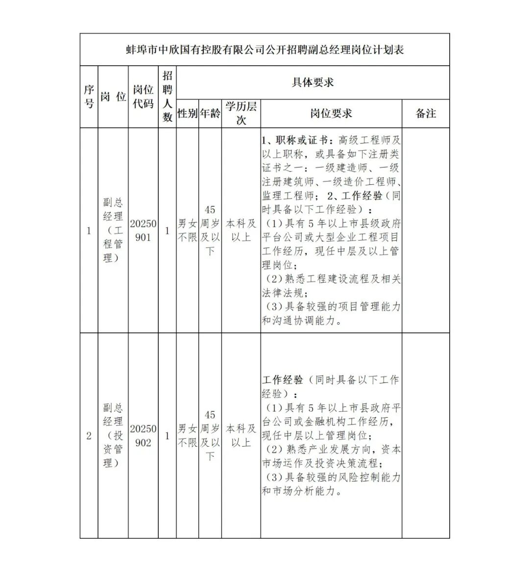 公开招聘副总经理3名!