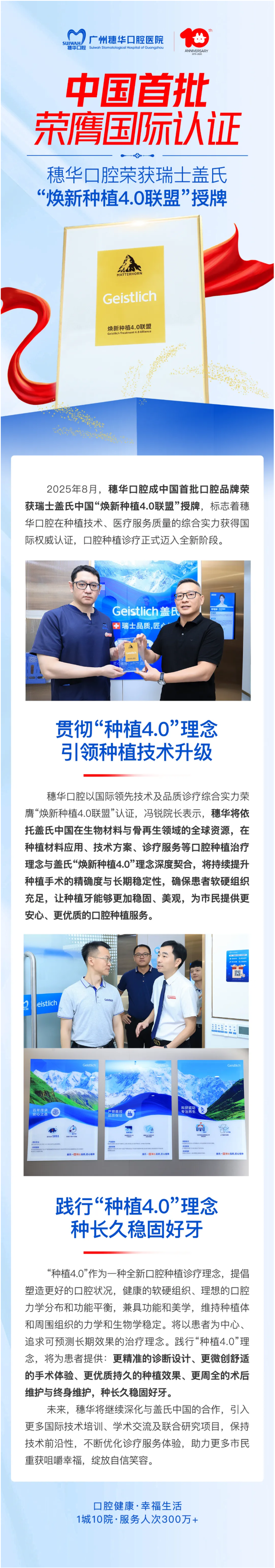 中国首批荣膺国际认证 | 穗华口腔荣获瑞士盖氏“焕新种植4.0联盟”授牌