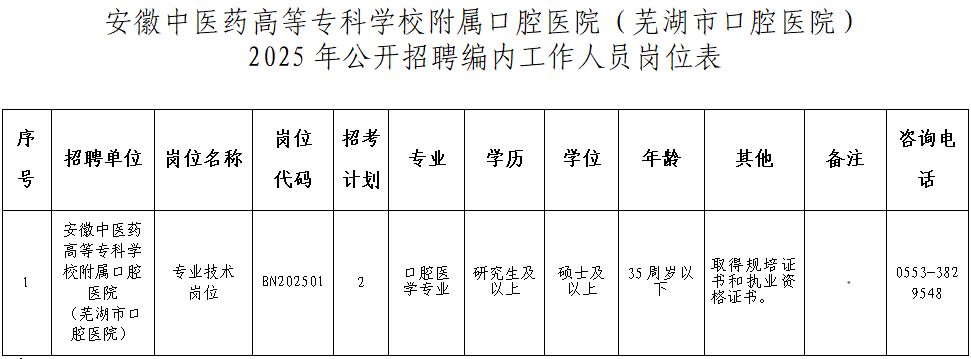 这家医院公开招聘2名编内工作人员