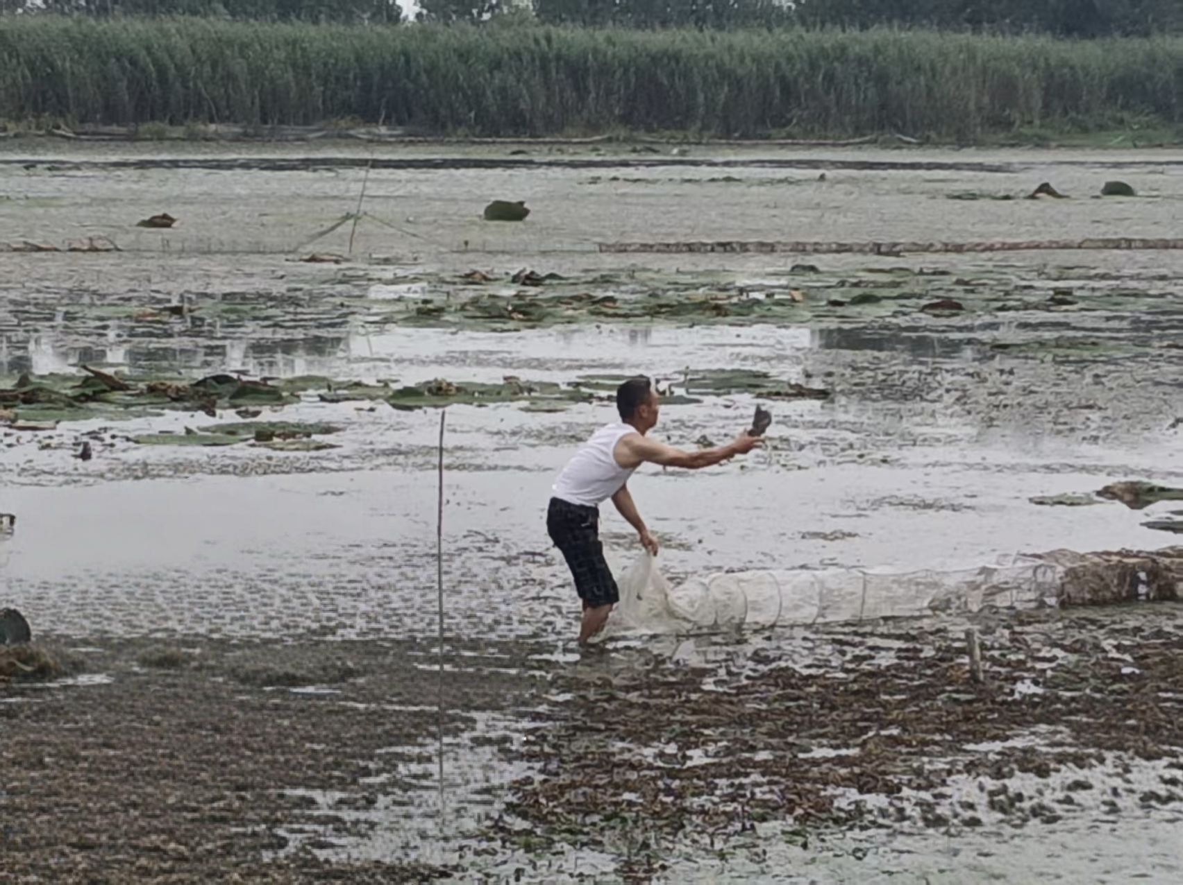 水位下降致鸟类误入地笼 工作人员紧急救援