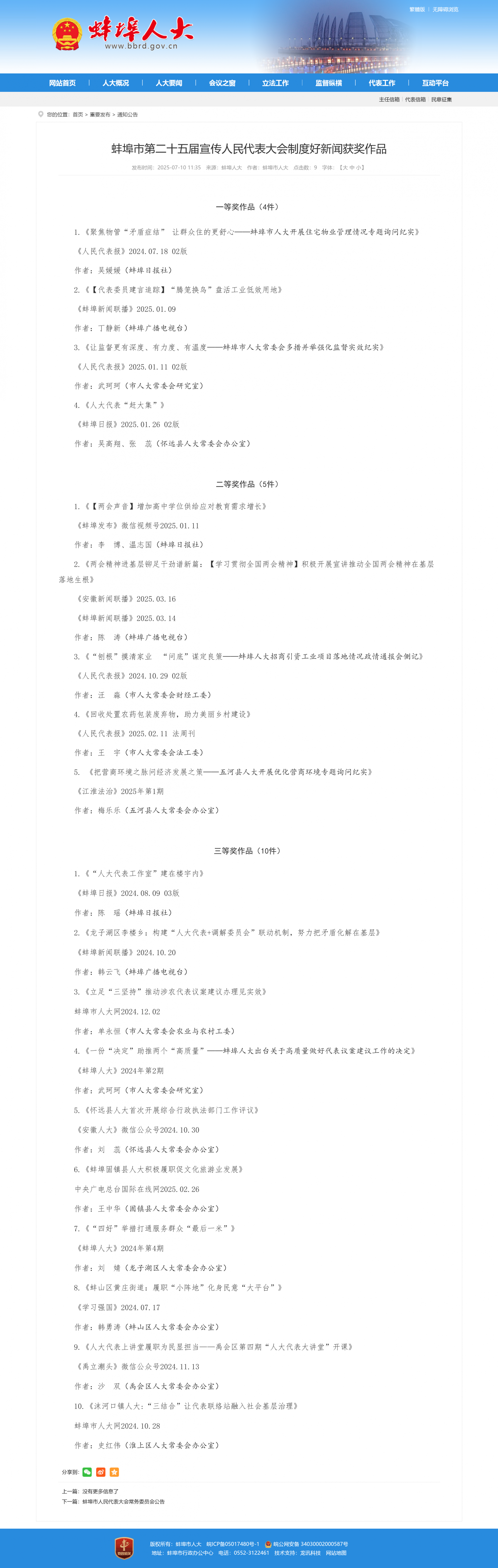 蚌埠市第二十五届宣传人民代表大会制度好新闻评选结果揭晓