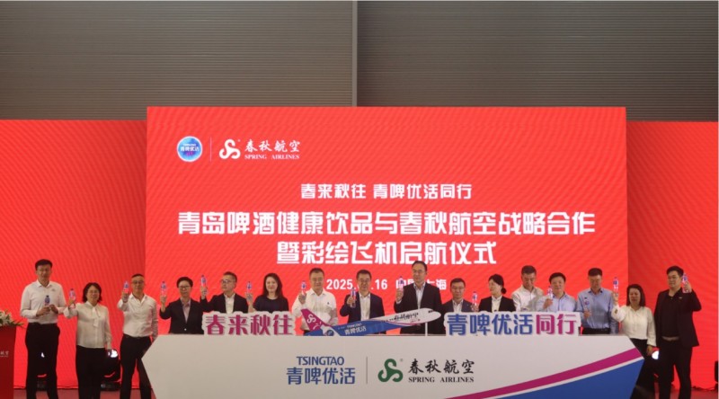 青啤健康饮品携手春秋航空 彩绘飞机首航仪式暨战略合作圆满举行