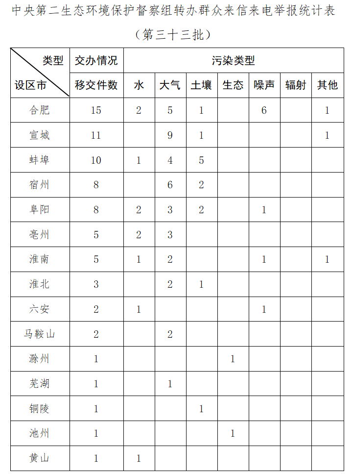 中央第二生态环境保护督察组向安徽省转办第三十三批信访件
