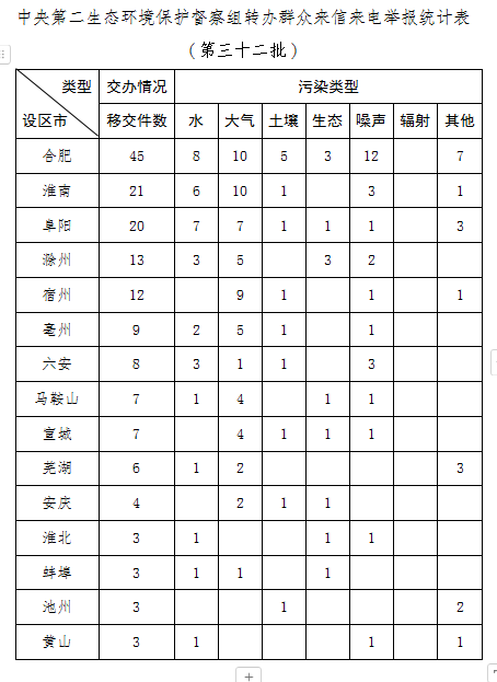 中央第二生态环境保护督察组向安徽省转办第三十二批信访件