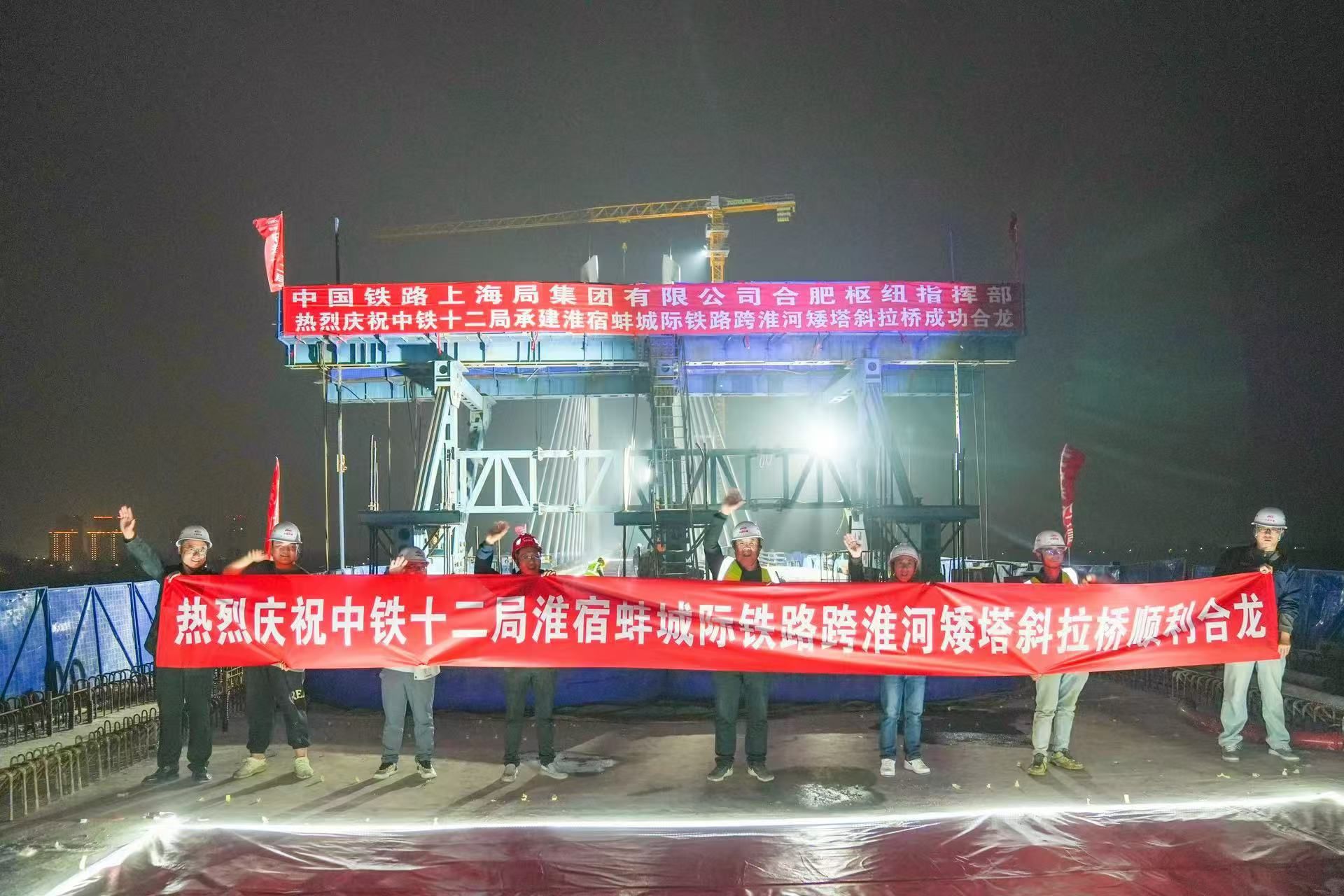 淮宿蚌城际铁路淮河特大桥主跨成功合龙