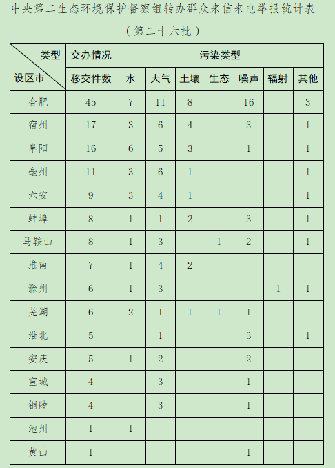 中央第二生态环境保护督察组向安徽省转办第二十六批信访件