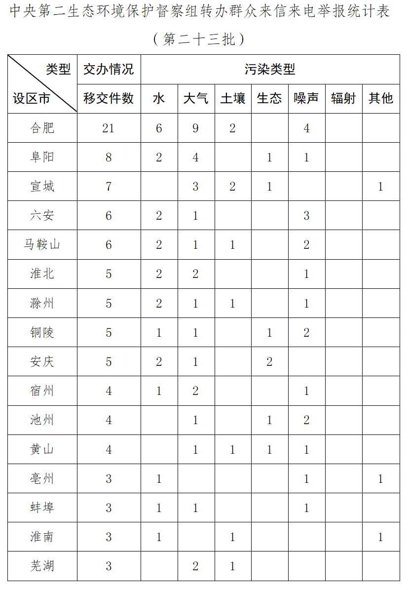 中央第二生态环境保护督察组向安徽省转办第二十三批信访件