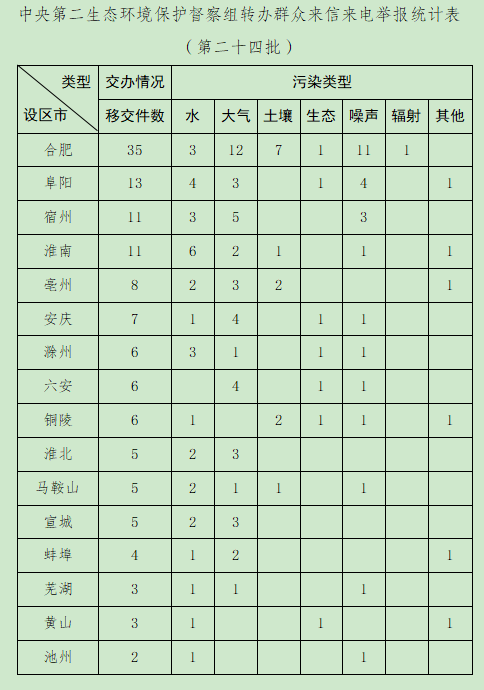 中央第二生态环境保护督察组向安徽省转办第二十四批信访件