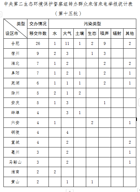 中央第二生态环境保护督察组向安徽省转办第十五批信访件