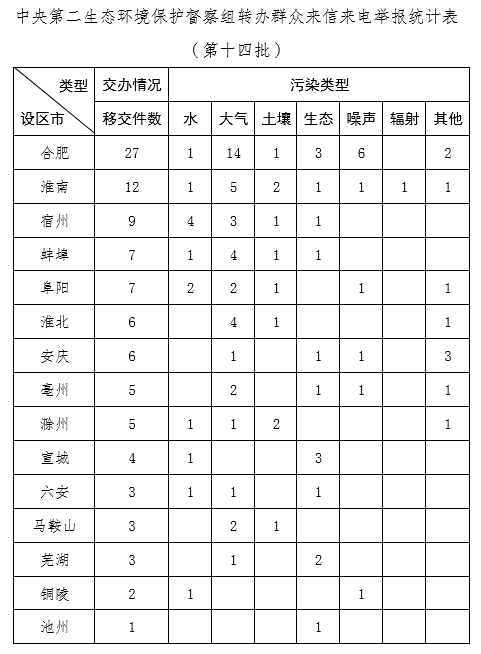 中央第二生态环境保护督察组向安徽省转办第十四批信访件