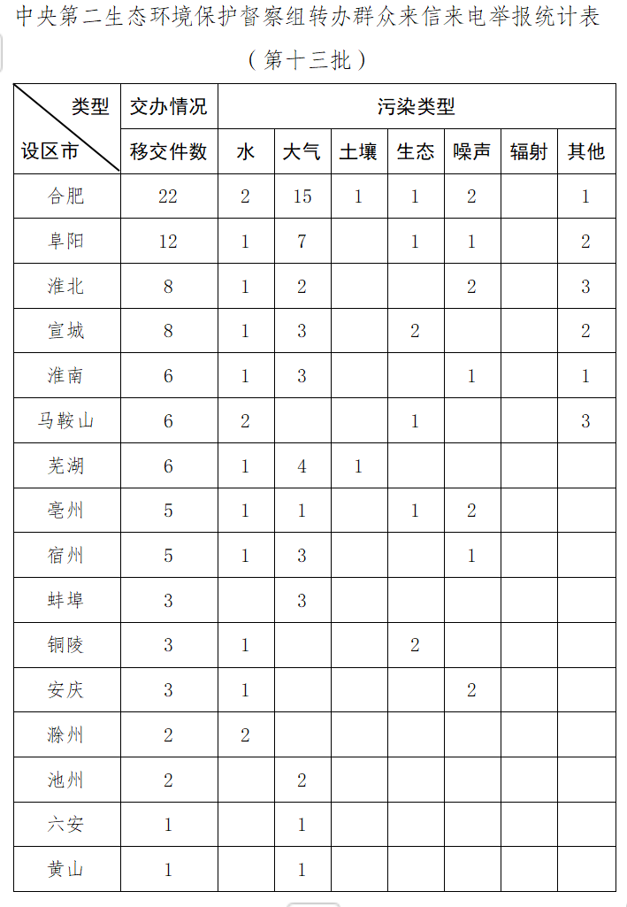 中央第二生态环境保护督察组向安徽省转办第十三批信访件