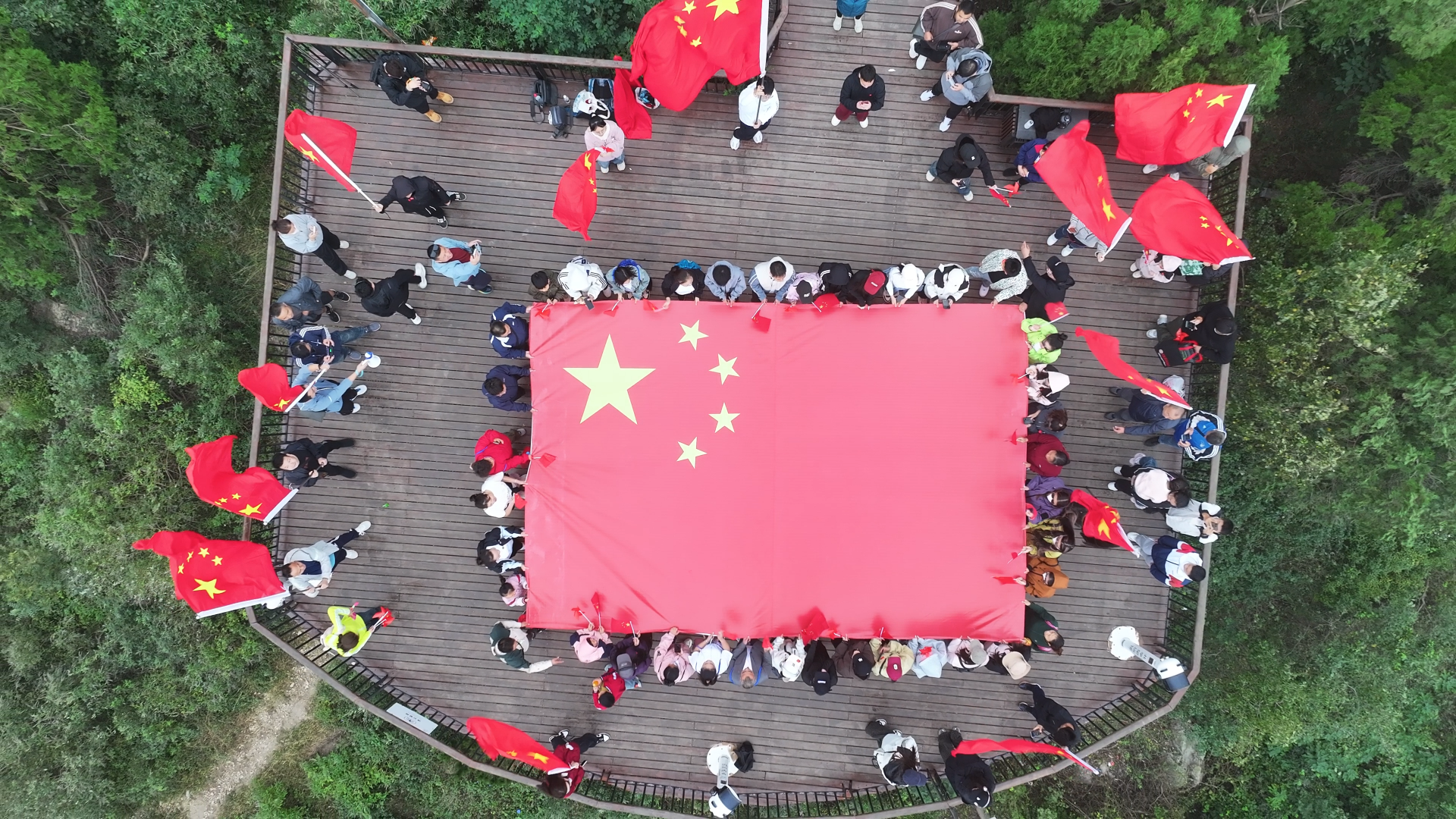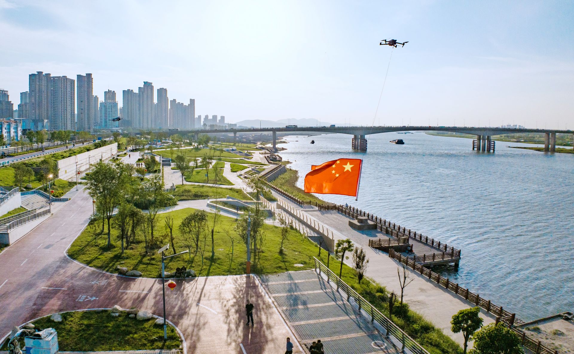 无人机护送国旗飞扬淮河两岸