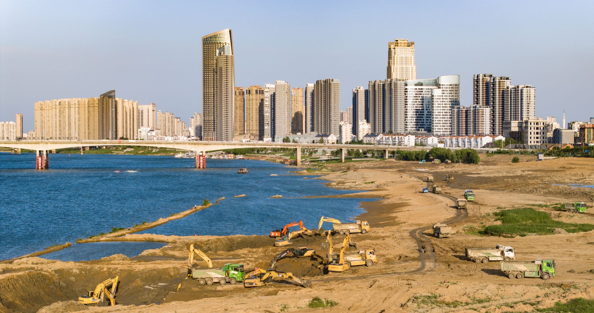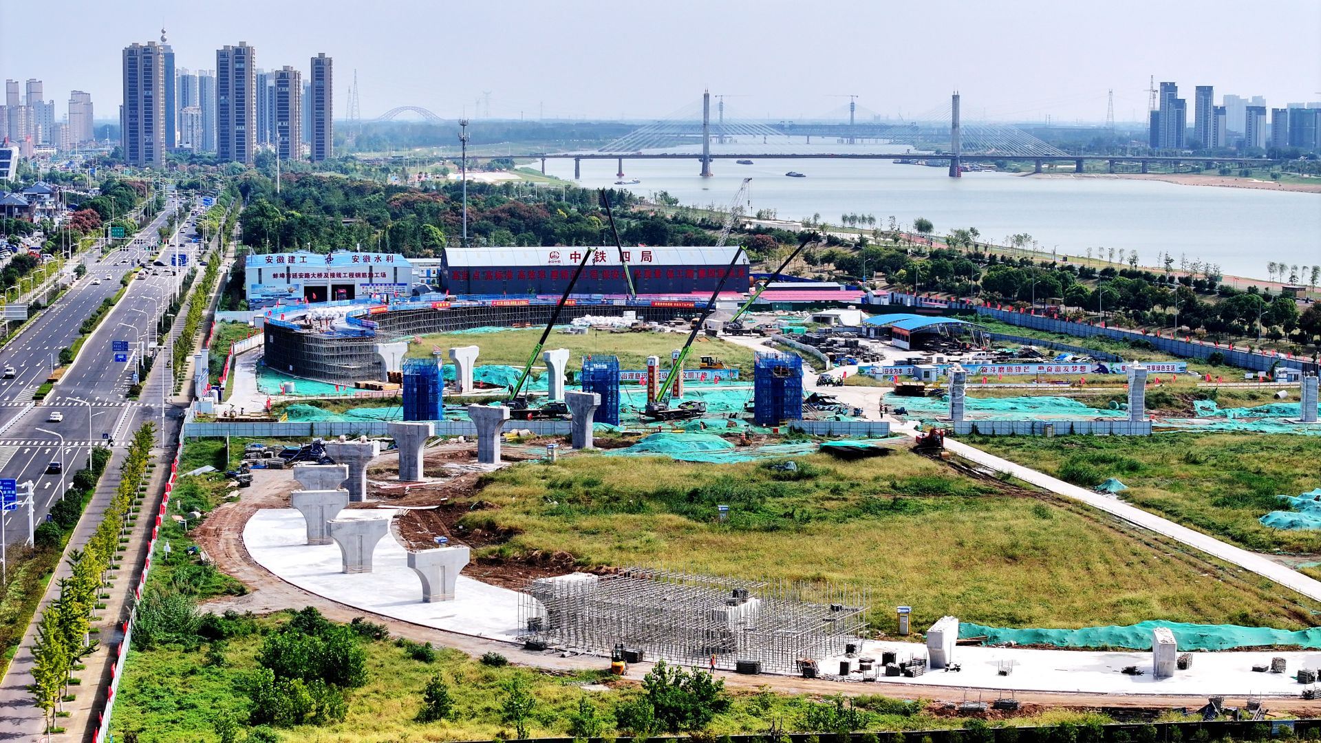 蚌埠靓淮河工程(席家沟—朝阳路桥段)建设者国庆坚守工地