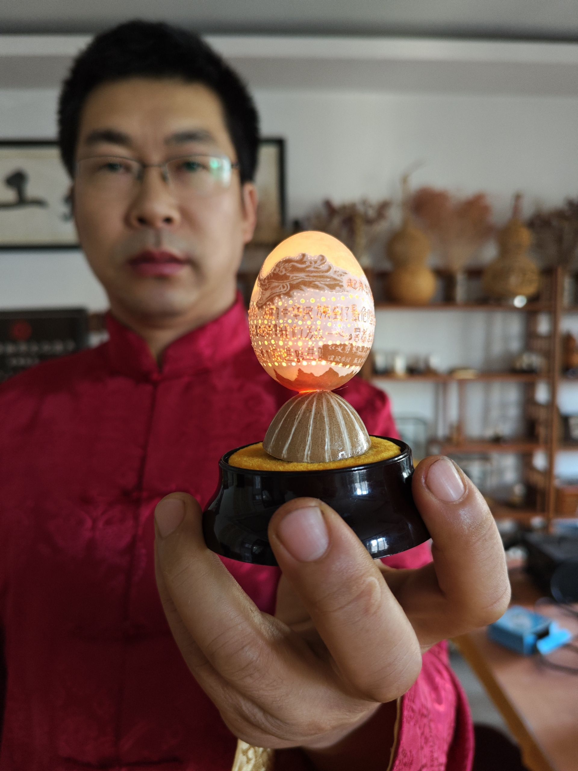 蛋雕作品——《“刺绣”义勇军进行曲》