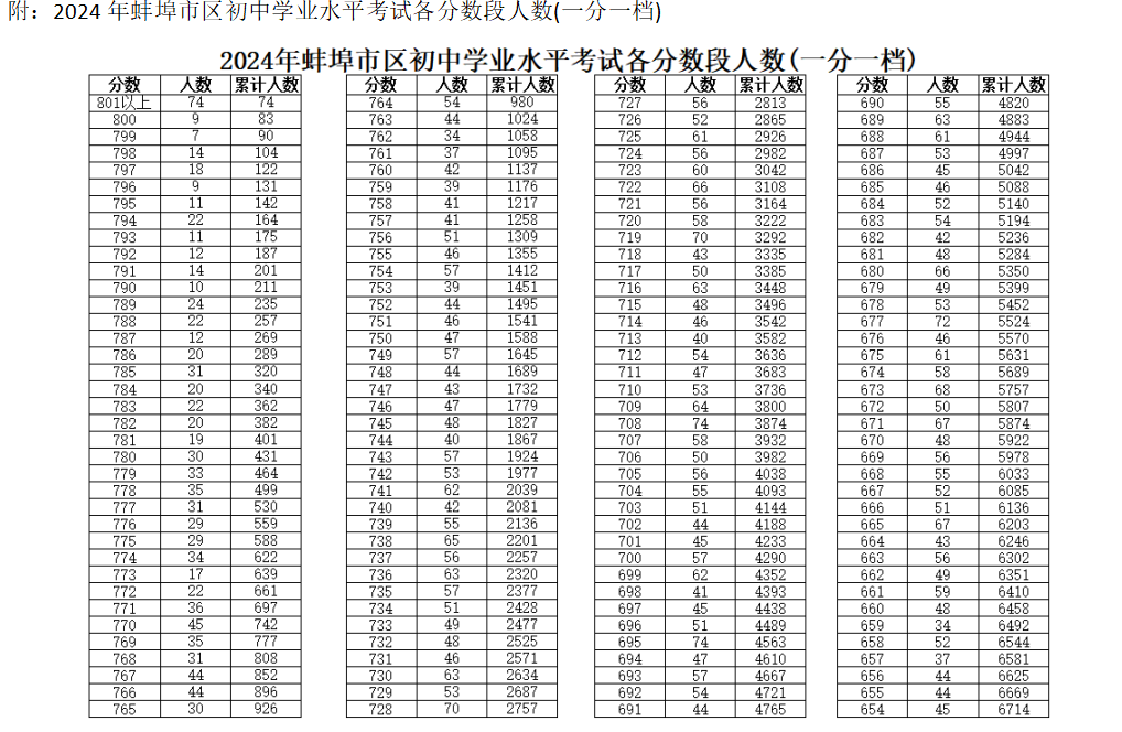 蚌埠市区2024年普通高中最低录取控制分数线划定