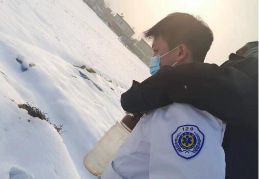 120司机背七旬老人雪地急行一公里上急救车