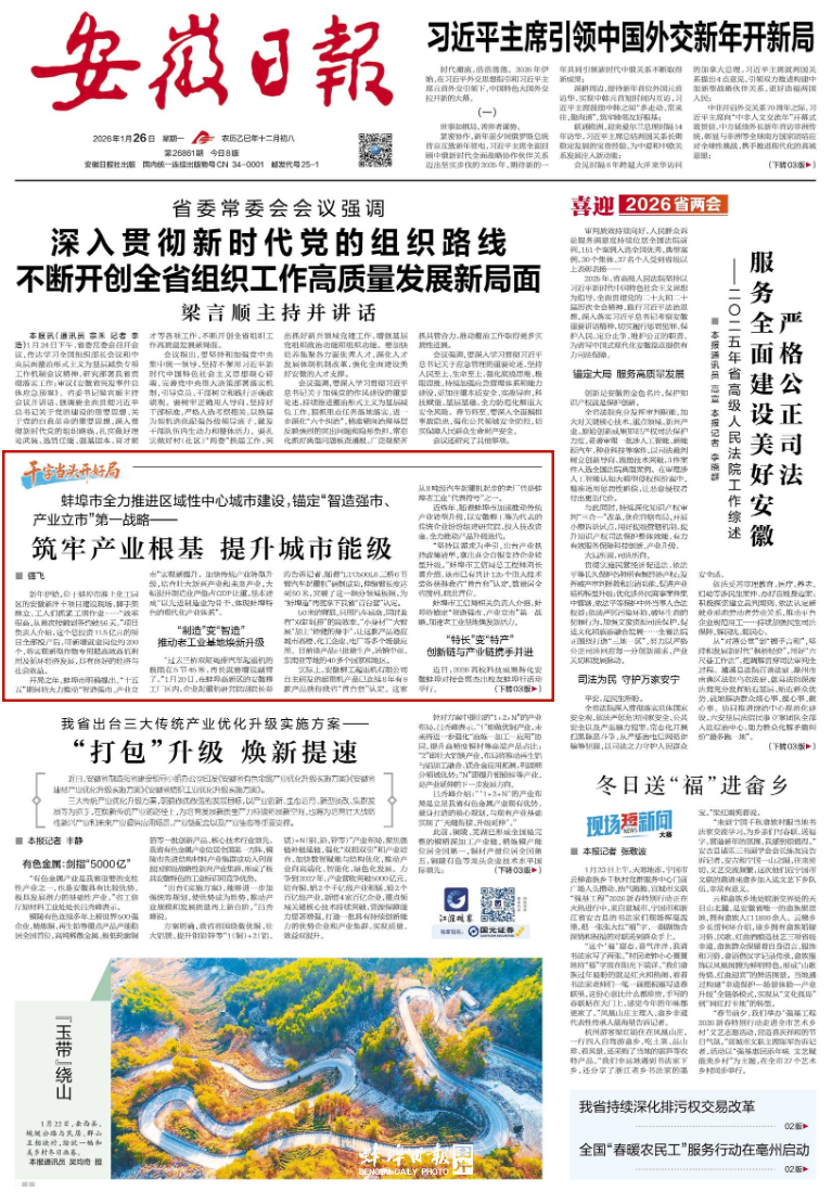 《安徽日报》头版关注蚌埠“智造强市、产业立市”第一战略