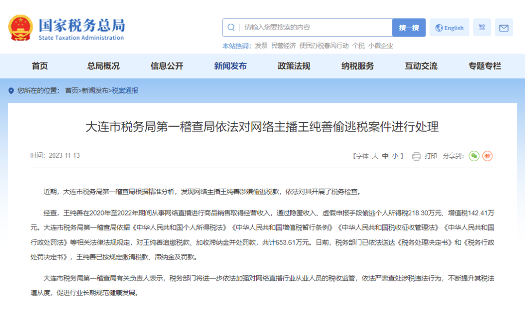 又一网络主播偷逃税被罚!