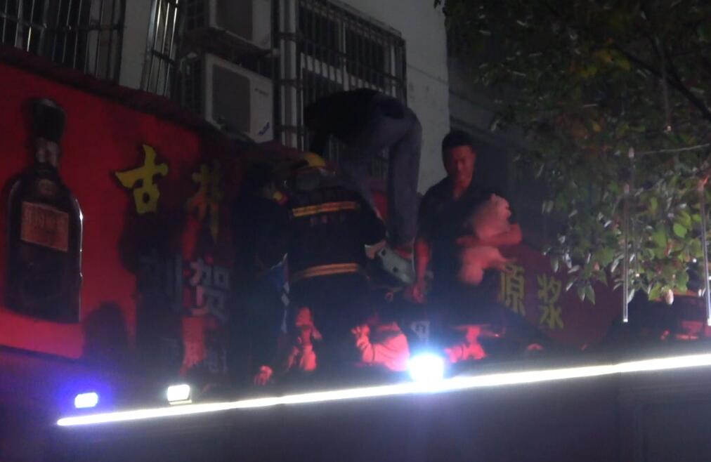 烟酒店着火致四人被困 消防紧急救援