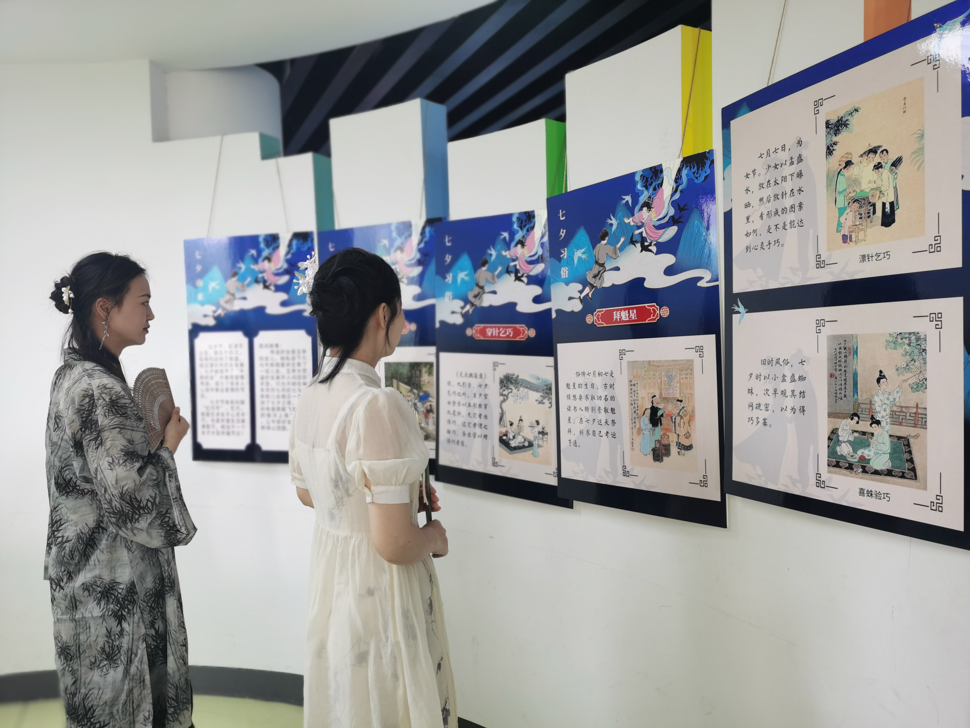 “‘相约书香 共度七夕’主题游园会设置了赛巧—制作‘莲花灯’、晒书—万物复‘书’、‘字落于笔,情流于纸’、诵读经典诗词、传统民俗趣味问答等系列活动,小朋友们和父母一起聆听牛郎织女的民间故事,体验汉服秀、逛诗会、星愿祈福的乐趣,用游戏的方式了解中国传...