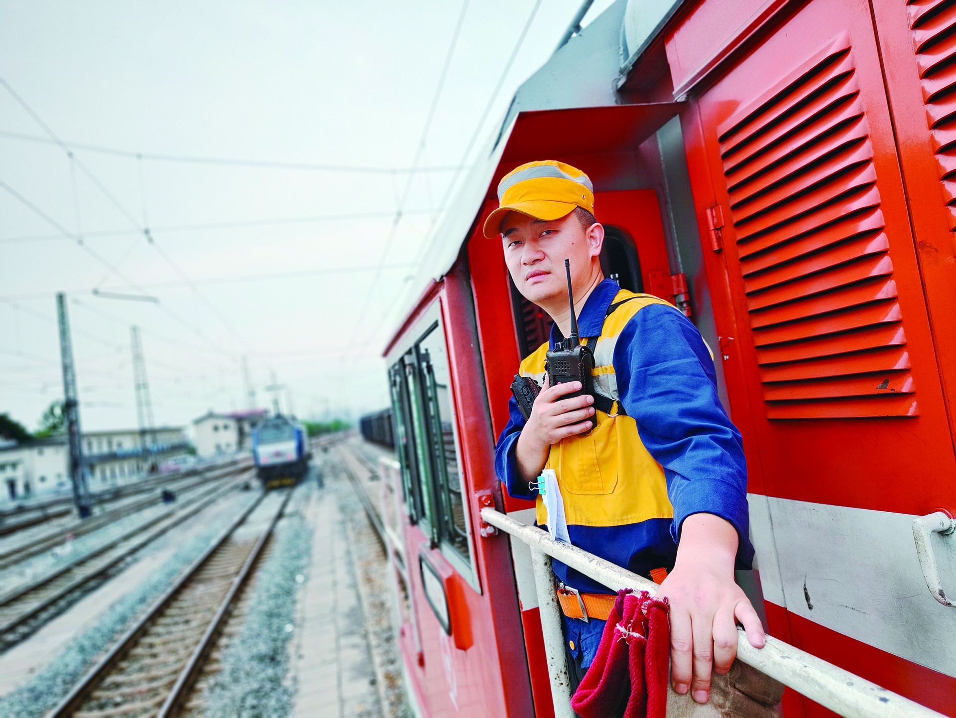 铁路调车员头顶烈日为列车穿针引线