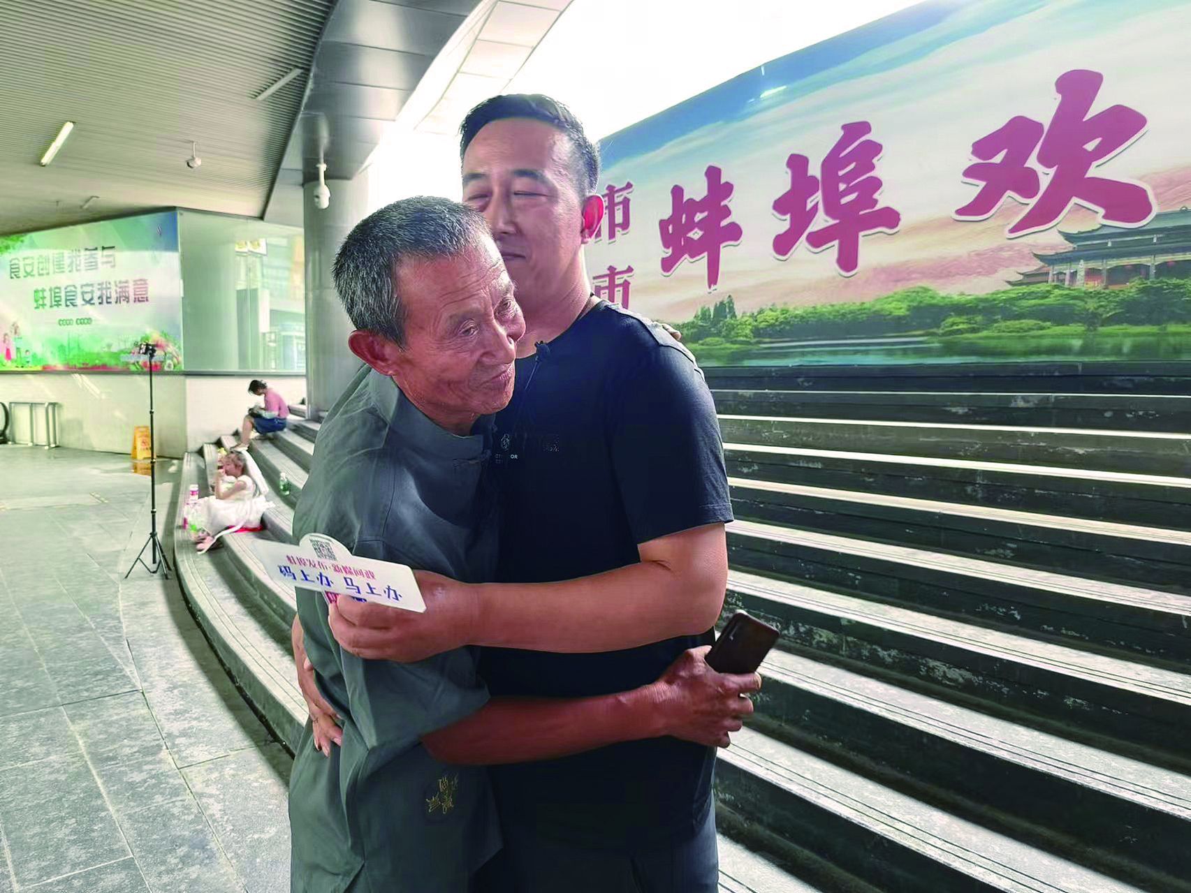 他抱着试试看的心态在平台留言求助,没想到这么快就有了圆满的结果——7月11日13:16分,石家庄人宫立江第一次来到蚌埠,走出高铁蚌埠南站,与46年未见过的父亲王道永紧紧拥抱在一起……今年7月,46岁的宫立江在蚌埠报业传媒集团旗下的蚌埠发布平台发布了...