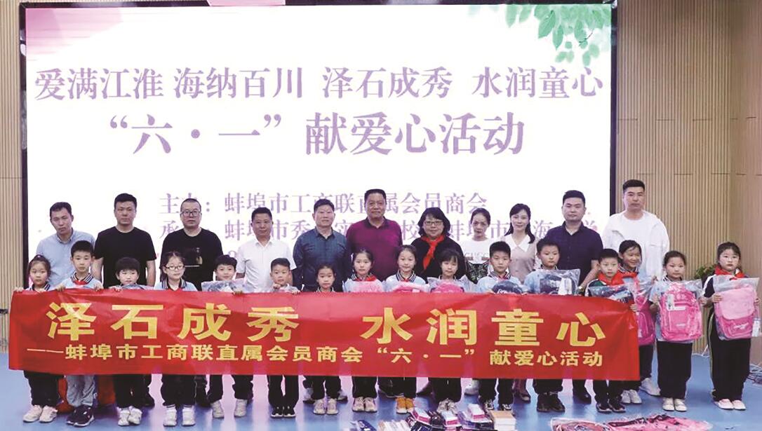 爱心企业家为同学们送上书包、笔袋、阅读笔记和软面抄等学习用品,用真情和爱心架起了爱的桥梁,彰显民营经济人士的社会担当。