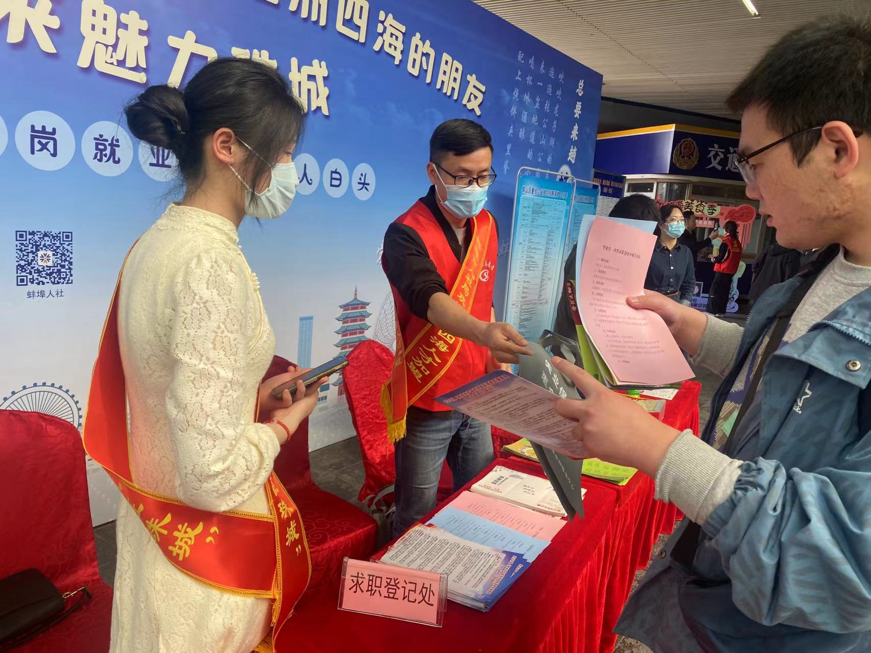 服务台为来蚌返蚌人员提供就业人才政策咨询、求职登记、岗位匹配等就业服务,搭建起“出站即选岗”的供需快速对接桥梁。