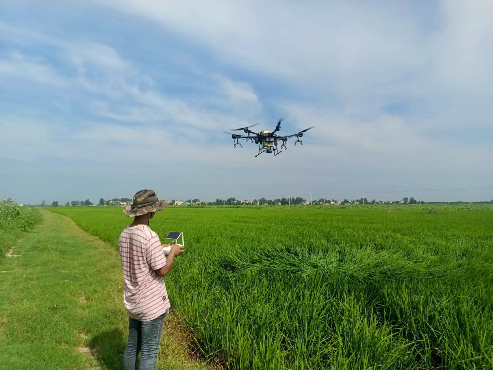 24岁的王秋生是一名农业植保无人机飞手,大学毕业后回到家乡经营自家种植的100多亩地,同时他组建了自己的无人机飞手团队,为附近农户提供精准的播种、施肥、打药等无人机植保服务。
