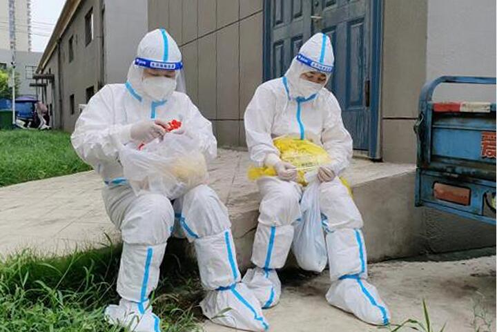 天河路核酸采样点的采样员吴丽萍是安利医院的工作人员,每天从早晨4点起就开始工作,除了参加核酸采样,还要上门为居家隔离人员采样、测量体温,为行动不便的老人量血压等,忙起来连吃口饭喝口水的时间都没有,工作结束已是晚上11点左右。