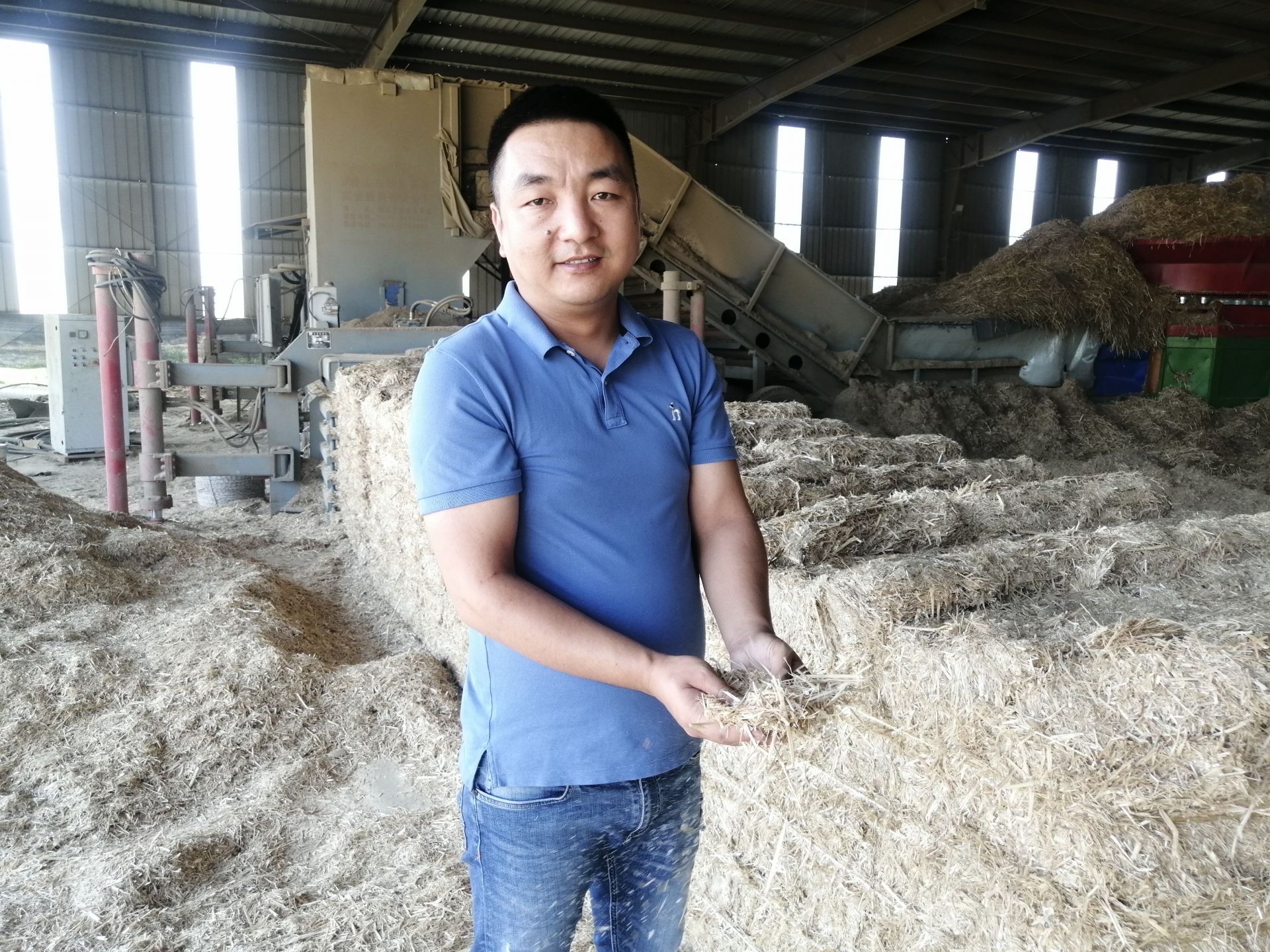 采访当天,记者来到收储中心,只见空地里的秸秆码放整齐、堆积成山,收储大棚里到处弥漫着草灰,一台抓草机不停地将秸秆投入进料口,随着粉碎揉丝机持续轰鸣,一块块捆扎好的方形秸秆堆垛从机器另一端“吐出来”,“这就是我们的核心设备,能将长条秸秆粉碎成5-8厘...