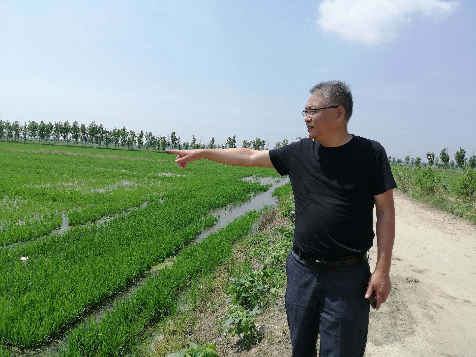 “眼前这一大块稻田都是俺家的部分承包地,大概有300亩,今年的稻茬麦亩产达到了700斤,真是多年未见的丰收。”