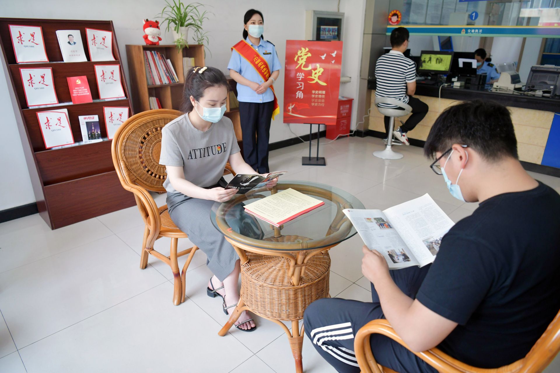 党史学习教育开展以来,该中心利用现有办公条件,将便民服务窗口打造成“党史故事图书角”,为前来办理业务的车主提供一个党史学习教育的“微阵地”。