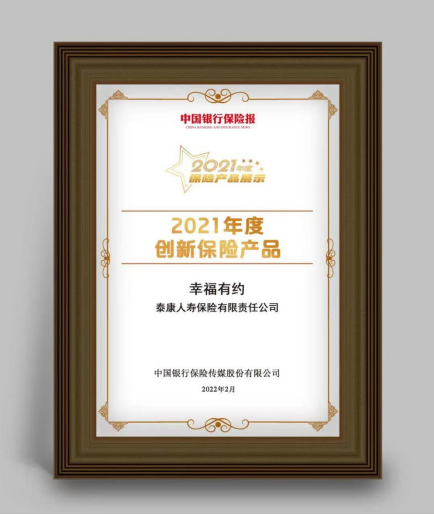 泰康人寿“幸福有约”荣获年度创新保险产品奖项