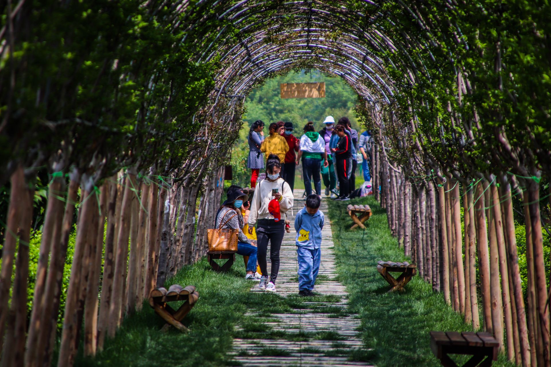 在张公山公园、花博园等景区,记者看到或一家大小,或三五知己结伴出行,在景区内拍照留念,观光游览。