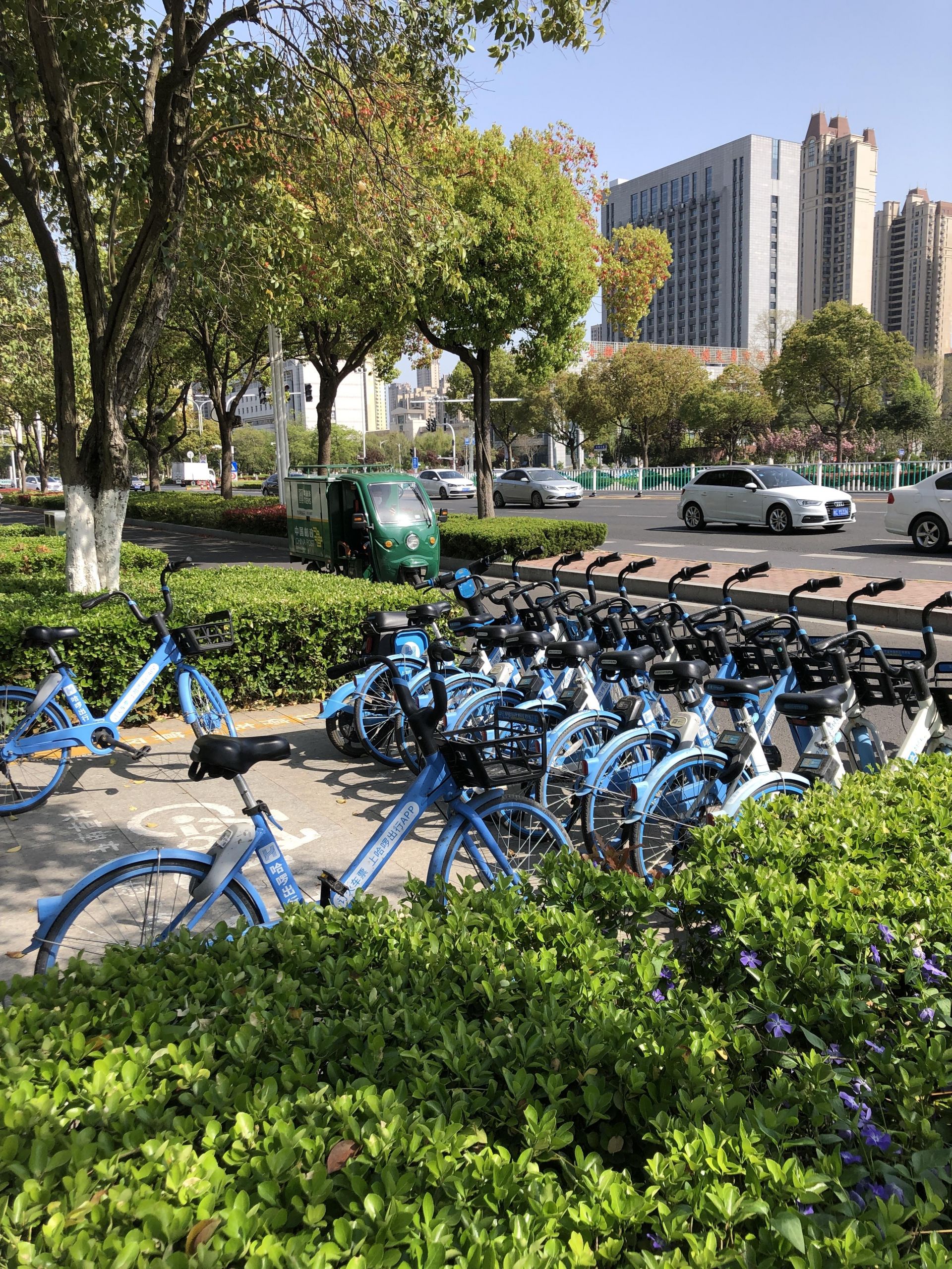 错落有致的行道树间,各种花盛开了,风一吹,樱花“纷纷飞花”,车辆规范有序停在风景中……城市街头一幕幕,可真“养眼”。