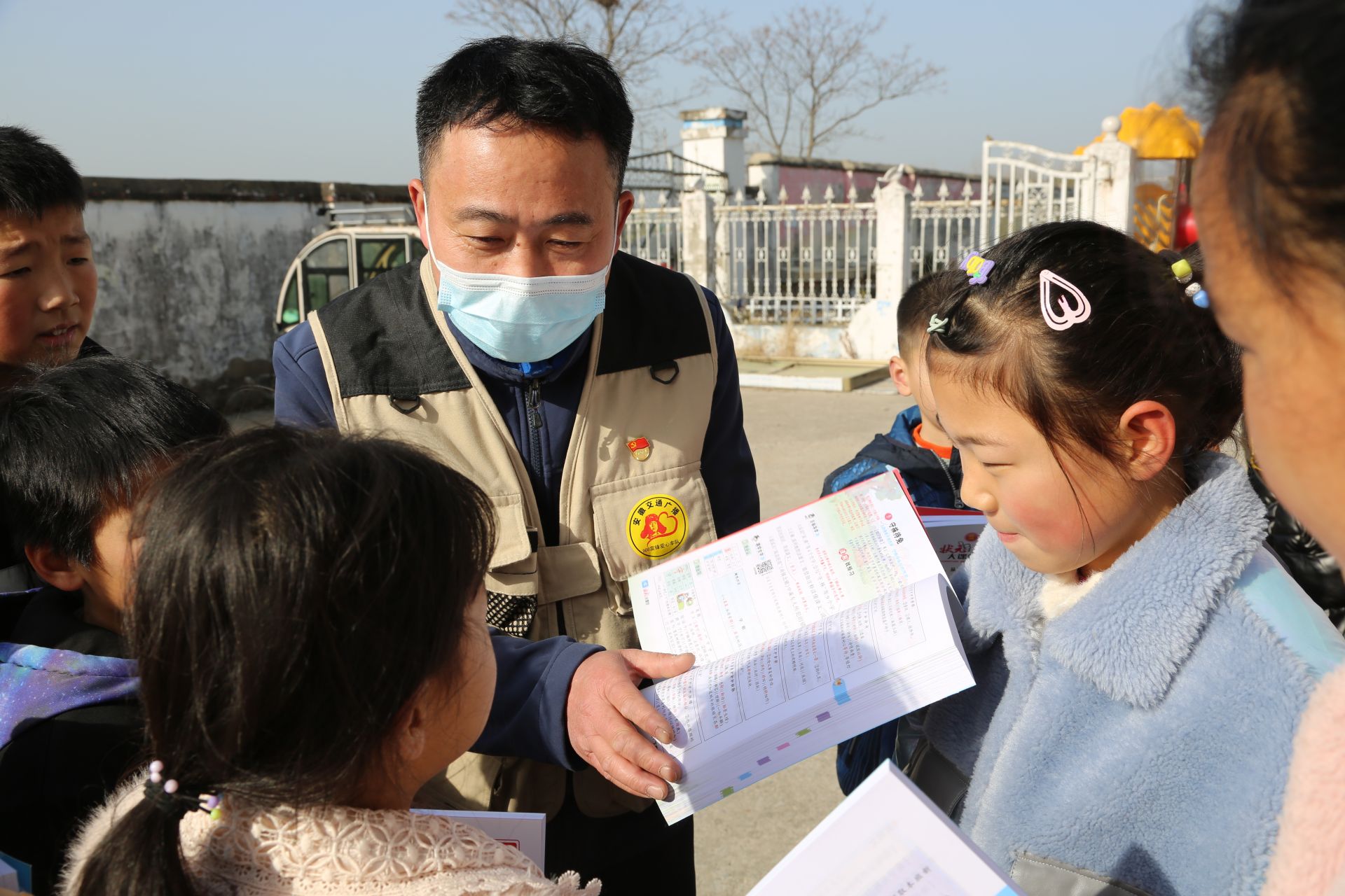 志愿者将学习资料送到泰山小学