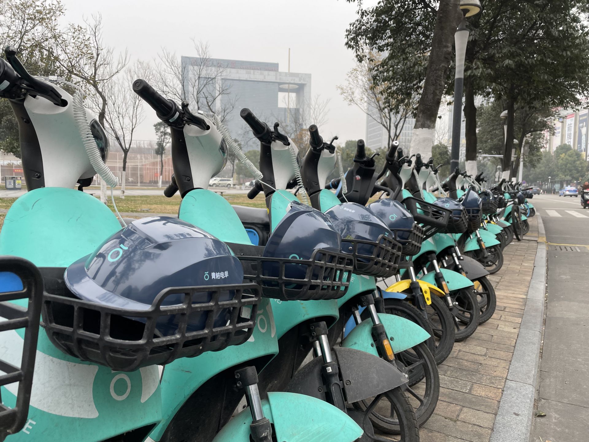 部分电单车配置了安全头盔