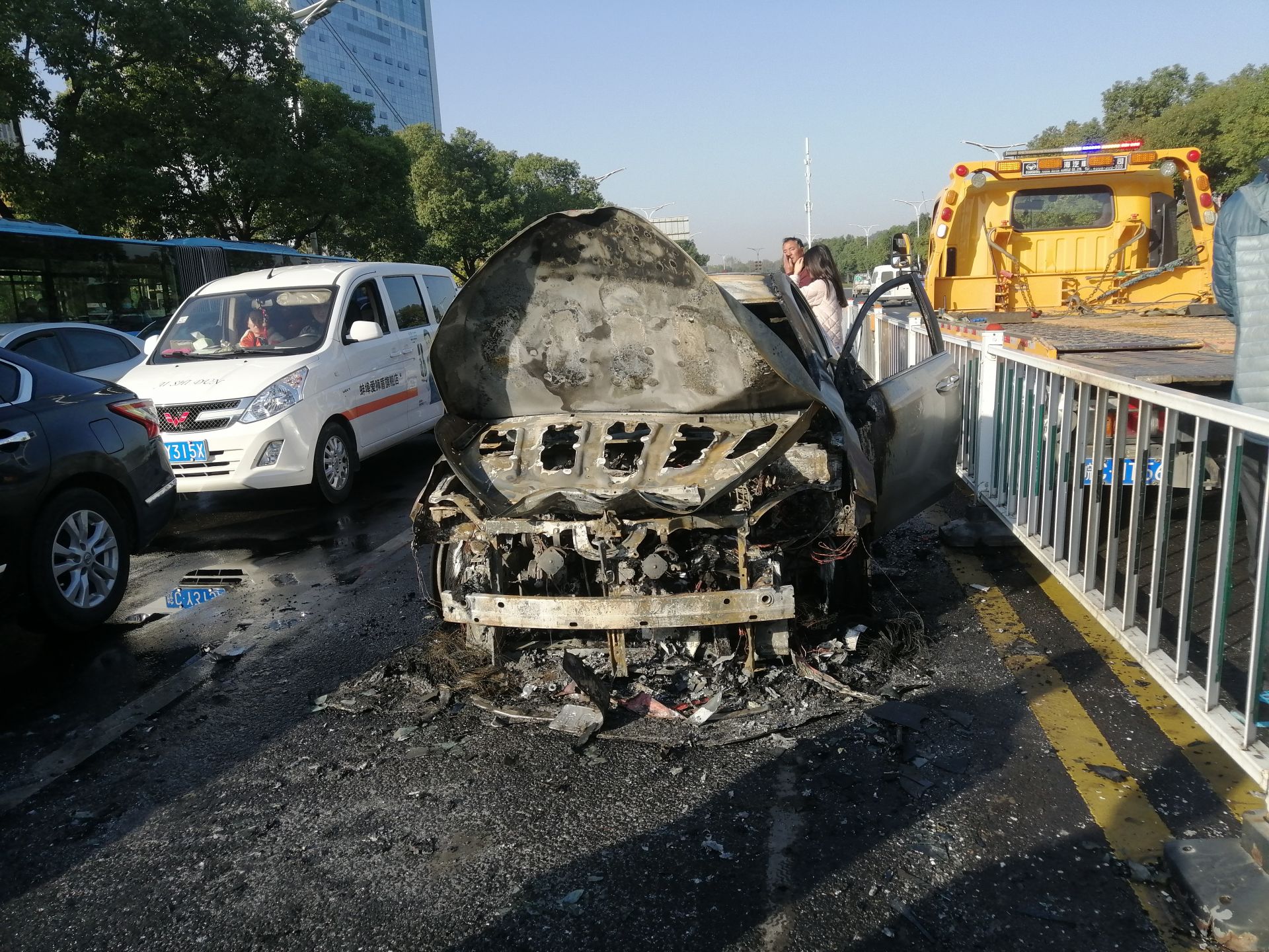 随后,消防人员赶到现场,对前后着火车辆明火进行扑灭,并协助交警对现场车辆进行疏导拦截。