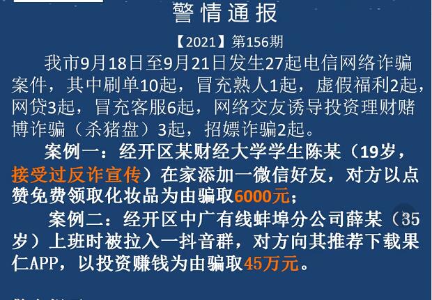 其中,经开区中广有线蚌埠分公司一员工下载果仁App参与网上投资被骗45万元。