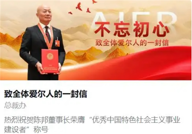 爱尔眼科陈邦荣膺国家“优秀建设者” 集团发全员信锚定合规迈向百年伟业